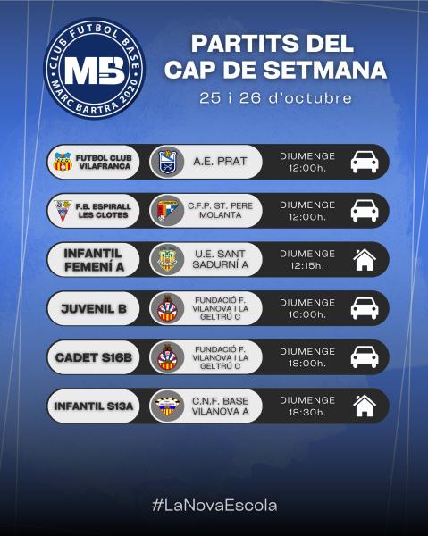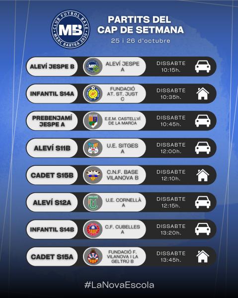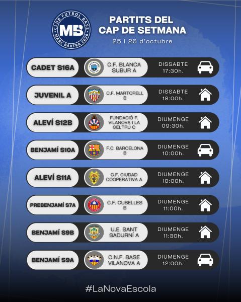 PARTITS CAP DE SETMANA 25>26 D'OCTUBRE DE 2025